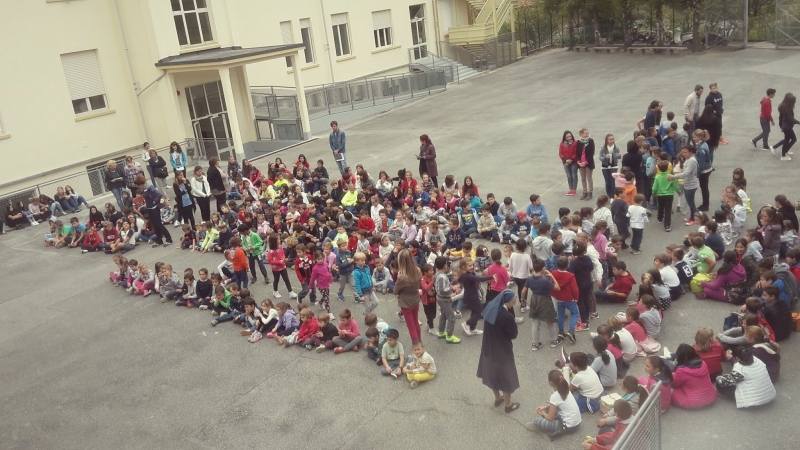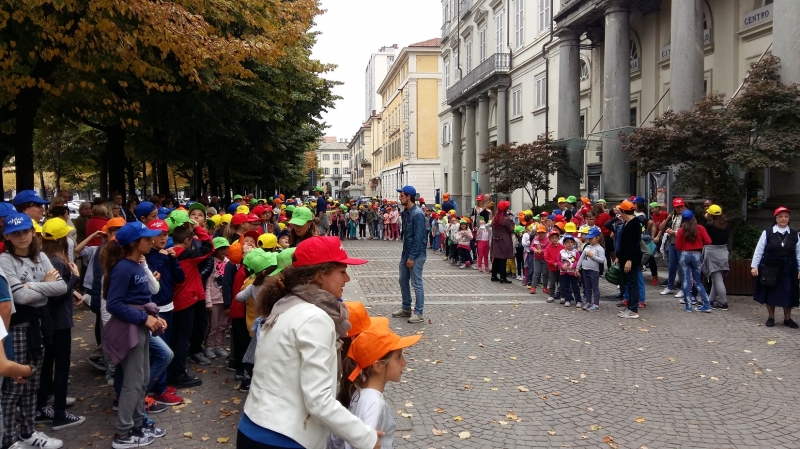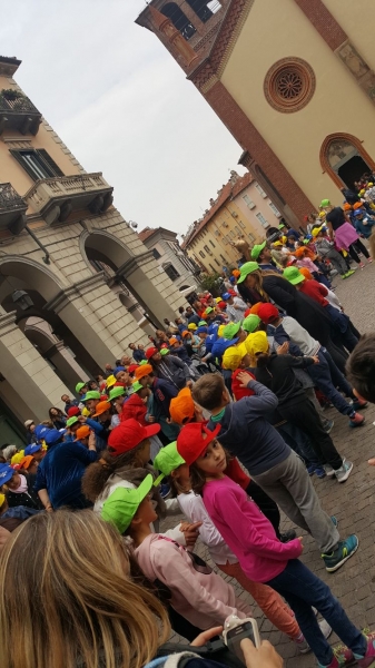 Martedì 26 settembre 2017 il nostro Istituto ha voluto festeggiare in maniera speciale la Giornata Europea delle Lingue, facendola coincidere con la tradizionale "Giornata dell'Amicizia" di inizio anno scolastico. Durante la mattinata, i ragazzi della scuola secondaria di primo grado hanno coinvolto i bambini della primaria in laboratori ludo-didattici a tema linguistico (Inglese, Francese, Spagnolo e Tedesco). Nel pomeriggio è stato preparato un flash mob che ha visto protagonisti tutti i bambini ed i ragazzi del primo ciclo scolastico. Il flash mob è andato in scena nel cuore del centro storico di Pinerolo: prima in piazza San Donato e immediatamente dopo in piazza Vittorio Veneto, di fronte al Teatro Sociale.