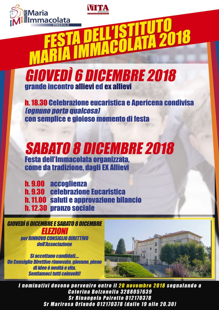 Giovedì 6 dicembre 2018 - in occasione dell'annuale Festa del nostro Istituto per la solennità liturgica dell'Immacolata Concezione - si è svolto un incontro degli allievi ed ex allievi. La serata ha preso avvio in palestra, con la celebrazione eucaristica presieduta da don Massimo Lovera (parroco a Pinerolo, già docente di Religione nel nostro liceo). Poi l'apericena condivisa (ogni famiglia ha portato qualcosa) con un semplice e gioioso momento di festa. In conclusione, lo spettacolo canoro e musicale realizzato dai ragazzi della scuola media e del liceo.