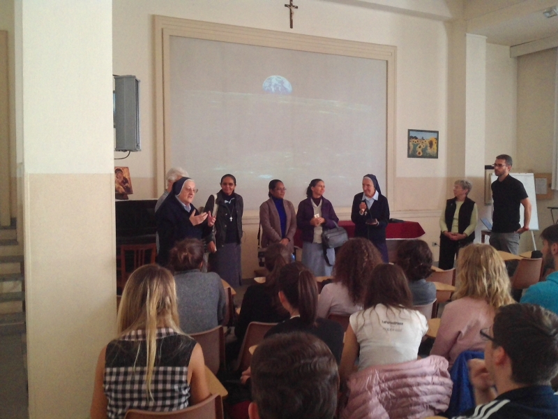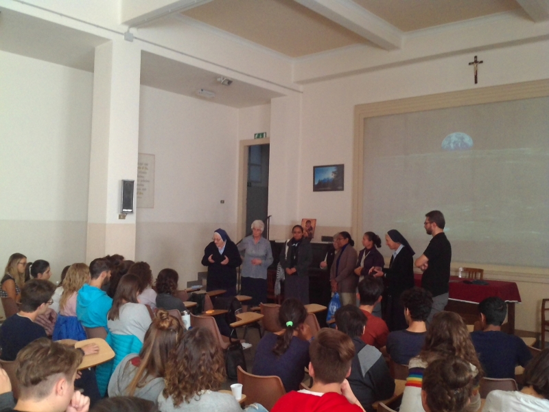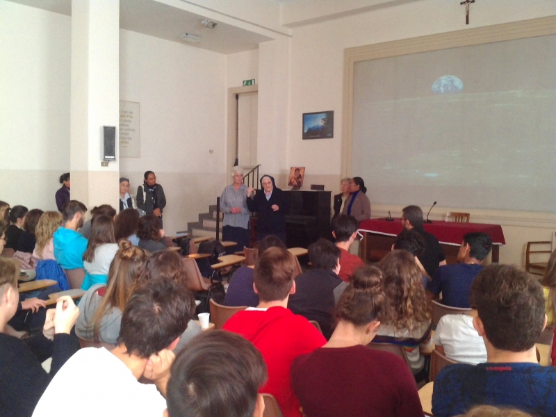 Gli studenti delle classi 4 e 5 liceo hanno trascorso, nella giornata di mercoledì 29 settembre 2016, due ore in compagnia di una delegazione internazionale della congregazione delle Suore di San Giuseppe, comprendente consorelle provenienti da India, Brasile e Stati Uniti. Nel corso dell'incontro suor Justine Senapati (India) e suor Barbara Bozak (Usa) hanno presentato i principali dossier sui quali l'ong della congregazione è impegnata. Gli studenti, coinvolti in una discussione che ha assunto, a tratti, anche la forma del dibattito, hanno potuto apprendere che, al centro delle attività curate dalle Suore di San Giuseppe all'interno del Consiglio Economico-Sociale dell'ONU (ECOSOC), vi sono la lotta per l'equità sociale nel mondo, le campagne per la salvaguardia dell'ambiente e, in particolar modo quest'anno, la tutela dei diritti della donna in relazione al fenomeno della tratta di esseri umani e ai flussi migratori globali. Come ha sottolineato l'intervento di suor Yoilma della delegazione brasiliana, l'obiettivo principale dell'ong della congregazione è quello di far recepire quanto più possibile nelle sedi istituzionali dell'ONU la voce delle masse popolari presso cui le varie missioni delle suore operano concretamente. In chiusura, dopo una positiva interazione tra ospiti e studenti, suorJustine ha salutato le classi invitando gli allievi e le allieve ad attivarsi in prima persona per essere protagonisti, a livello locale, di processi e azioni che gettino le fondamenta di quel “mondo migliore” che noi tutti sogniamo.