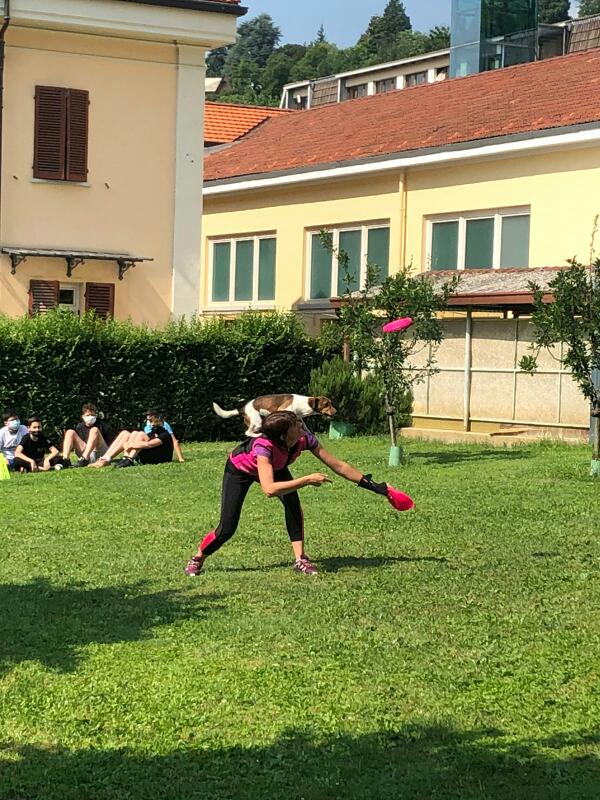 associazione "Sorrisi a 4 Zampe" e ad una performance finale (venerdì 11 giugno 2021) di Agility, Disc Dog e DogDance i ragazzi di tutte le classi della scuola media hanno appreso con gioia alcune informazioni utili sugli amici quadrupedi e di come sia possibile instaurare con loro una relazione più profonda attraverso il gioco, lo sport e la complicità.