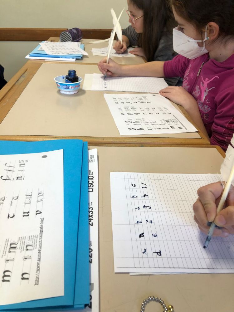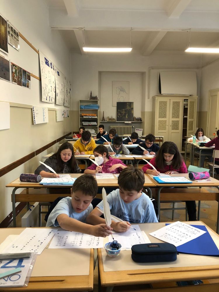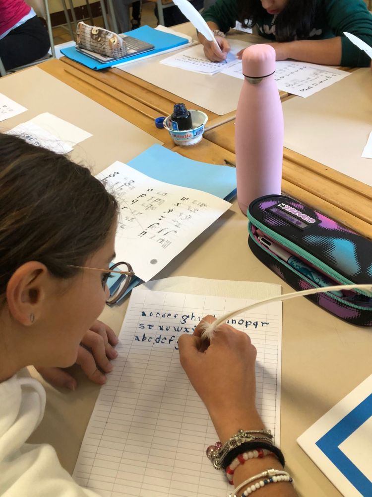 La prima media B si è calata nei panni degli antichi monaci degli scriptoria medievali, cimentandosi con piume d'oca, inchiostro in calamaio e nella decorazione di bellissimi capilettera.