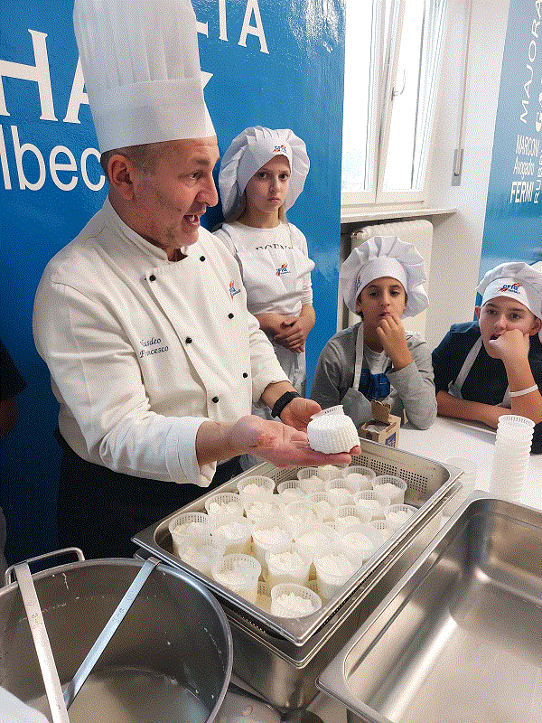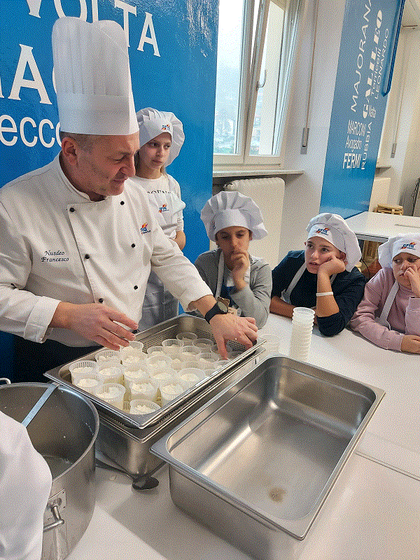 Oggi si è svolta la prima attività del laboratorio di Scienze in cucina che ha visto la partecipazione di un cuoco del CFIQ di Pinerolo coadiuvato da tre suoi alunni nella preparazione del formaggio con le alunne e gli alunni della I A della scuola secondaria di I grado.