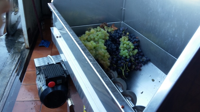 - a comprendere il processo meccanico di separazione degli acini dal raspo, spremitura e invio ai tini per la fase di fermentazione