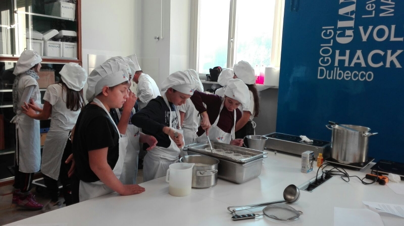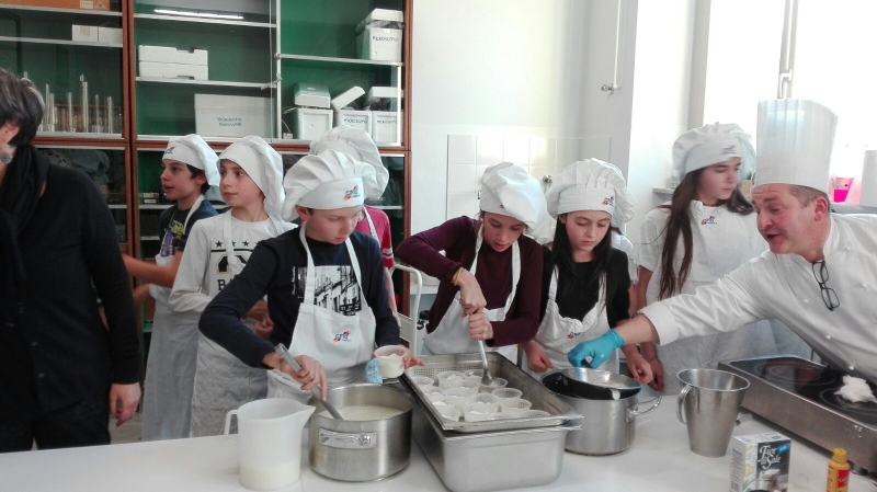 Giovedì 21 dicembre 2017 nell'aula di Scienze del nostro Istituto, che è stata recentemente ristrutturata e rinnovata negli arredi e nelle attrezzature, si è svolto il laboratorio “Andiamo a scoprire come si fa il formaggio” con la partecipazione degli allievi della classe 1B, sotto la guida competente di un cuoco d’eccezione, Francesco Nusdeo, in collaborazione con il CFIQ (Consorzio per la Formazione l'Innovazione e la Qualità) di Pinerolo. I ragazzi, indossati grembiule e cuffia, hanno appreso come si svolge la coagulazione del latte, quali sono gli ingredienti ottimali, qual è la differenza tra il caglio di origine animale e quello di tipo vegetale, quali sono le condizioni di temperatura e i tempi per la produzione della cagliata, come essa si rompe e si spurga e, soprattutto, con l’aiuto del cuoco Nusdeo, hanno realizzato l’intero processo al termine del quale hanno riempito le fascere, ottenendo dei fantastici “tomini” che, ognuno, ha portato a casa per degustarli con i propri cari. Grande successo dal punto di vista della bontà e un messaggio importante da non dimenticare (citiamo Nusdeo): «Se si può avere il controllo su quello che si mangia, lo si avrà anche sulla propria salute!».