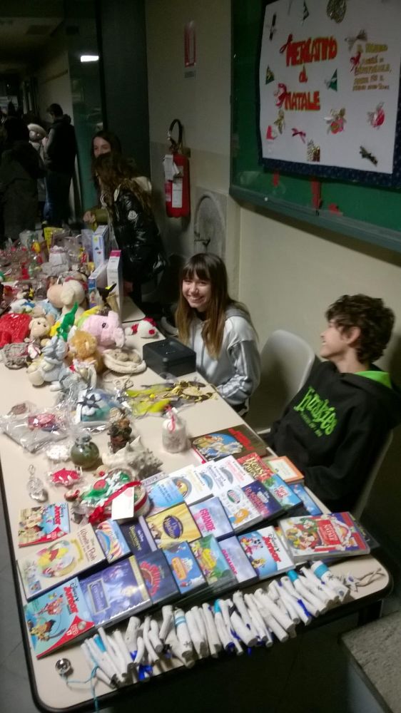 associazione "Aiuti dal Cuore" - l’operazione chirurgica del nostro compagno Thomas Oggianu (1B). Lui si merita un aiuto dal cuore perciò noi abbiamo voluto chiedere anche a voi di partecipare acquistando un oggetto natalizio (alcuni anche realizzati da noi) donando così un piccolo contributo (offerta libera) che abbiamo poi consegnato alla mamma di Thomas: in totale 1780 euro. A cui vanno aggiunti altri 330 euro (ultima serata di bancarella e "tombolate" nelle classi) che saranno utilizzati per finanziare l'installazione di un montascale per collegare il salone con il piano terra del nostro Istituto, in maniera da contribuire all'abbattimento delle barriere architettoniche. La mamma di Thomas è venuta nella nostra classe e così abbiamo avuto occasione di rivederla. È stato davvero emozionante. Questi fondi che abbiamo raccolto servono a finanziare l'operazione, molto difficile e molto costosa, che avverrà a San Marino da parte di un chirurgo russo. Thomas soffre di una diplegia spastica sin dalla nascita, ciò che avevano detto i medici è stato: purtroppo il ragazzo ha buone possibilità di rimanere in stato vegetativo. La famiglia non si è arresa e ha fatto di tutto per lui, un figlio molto speciale. Thomas è arrivato così sulla sedia a rotelle e a volte a camminare con un girello. Lui per noi è tanto speciale e abbiamo così deciso quest’anno di dedicargli questo nostro progetto di Service Learning che includeva la bancarella natalizia.
