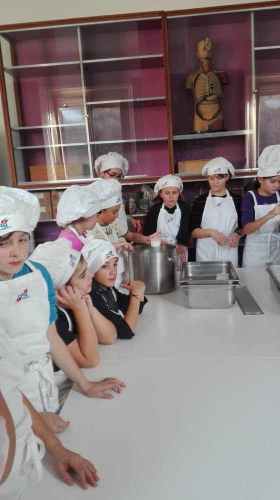 CFIQ (Consorzio per la Formazione l'Innovazione e la Qualità) di Pinerolo. Accompagnati dalla docente di Matematica e Scienze, Lorella Darò, hanno realizzato... una pizza ciascuno! L'esperienza laboratoriale è poi proseguita giovedì 5 dicembre, con la produzione di un gustoso tomino!