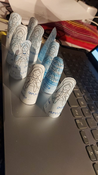 Per ogni bambino è stata realizzata una piccola statuetta di carta che ciascuno potrà portare a casa per la preghiera a Maria.