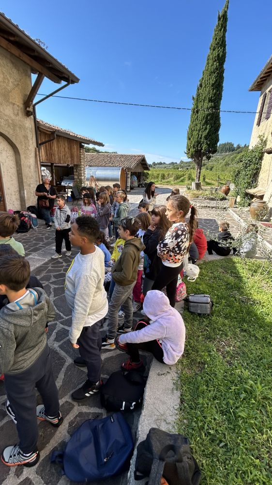 Essendo che il viaggio era molto lungo lo abbiamo diviso in più momenti. La prima tappa l’abbiamo fatta in un frantoio per vedere come raccolgono le olive e quali lavorazioni bisogna fare per ottenere l’olio. In realtà il proprietario ci ha detto che il periodo non è quello indicato per vedere la produzione d’olio però ci ha spiegato tutto quanto e abbiamo anche visto come vendemmiano nella zona del Bardolino.