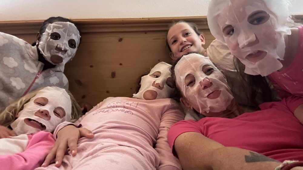 Prima di andare a dormire ci siamo divertiti con le nostre maestre e abbiamo fatto momento relax con maschere facciali e risate.