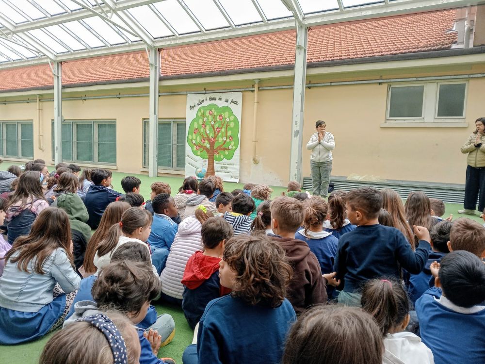 Dopo la preghiera, ogni bambino ha portato la sua promessa "in conca" alle mani, soffiandola leggera verso il cielo e abbracciandosi forte per sigillare l'impegno di cura e rispetto per la Terra.
