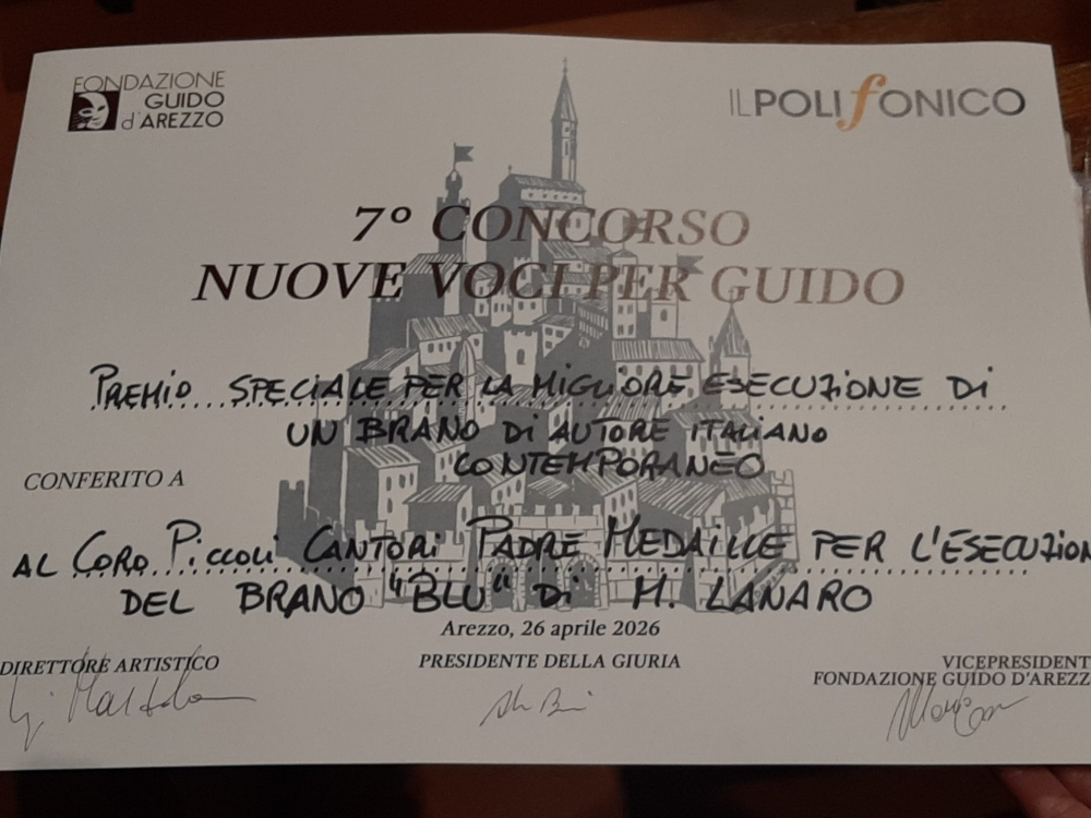 - Premio Speciale per la migliore esecuzione di un brano di autore italiano contemporaneo, assegnato sempre ai Piccoli Cantori Padre Medaille per l'emozionante interpretazione di "Blu" del Maestro M. Lanaro.