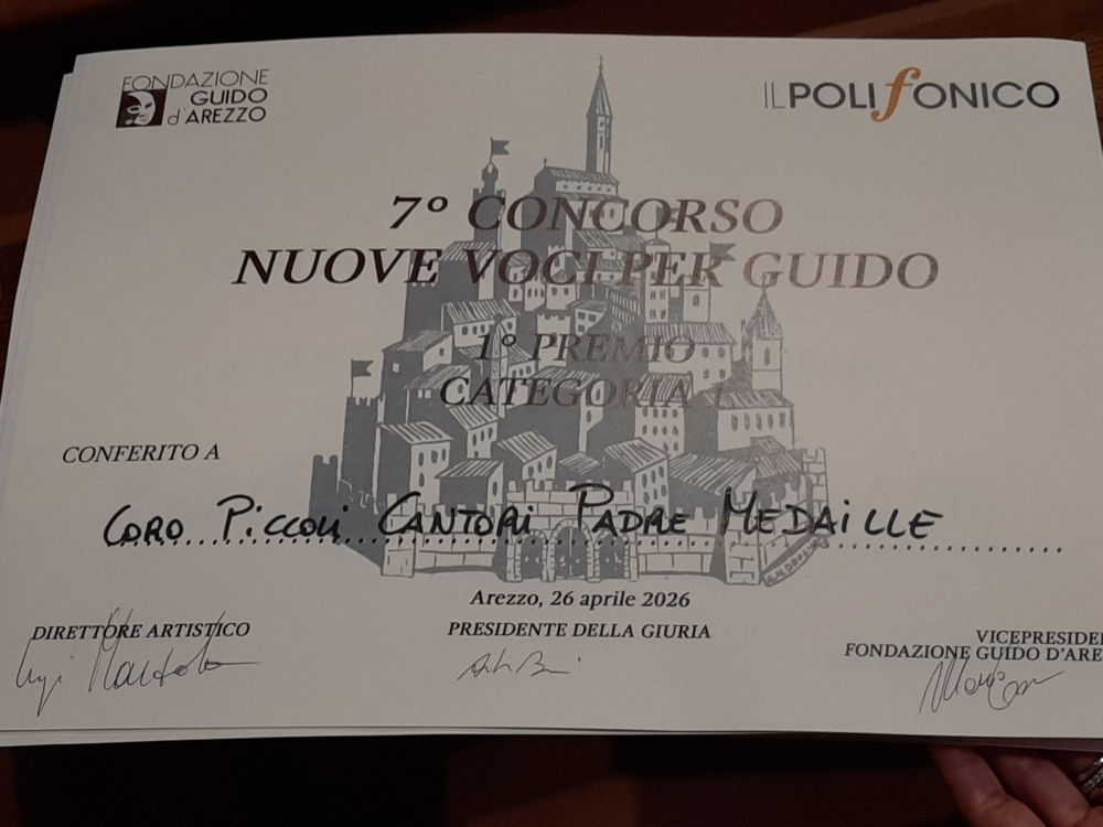 - 1° Premio Categoria conferito al Coro Piccoli Cantori Padre Medaille.