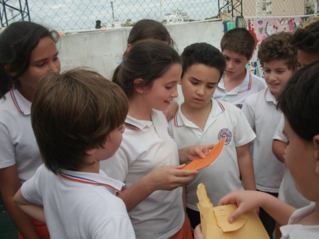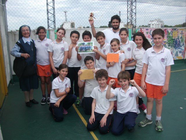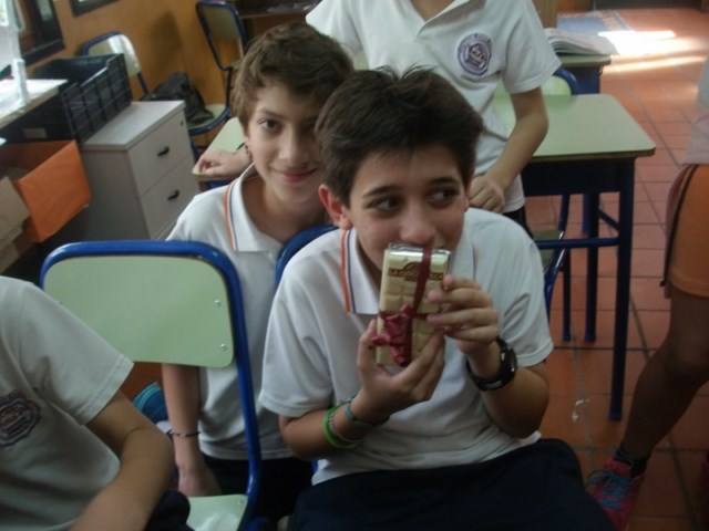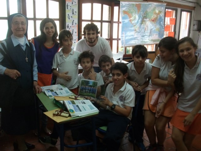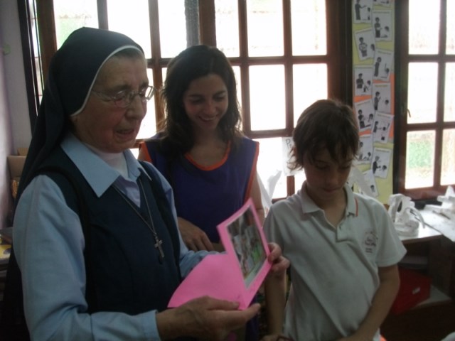 Anche quest'anno le classi 5A e 5B del nostro istituto stanno facendo amicizia con due classi oltreoceano, precisamente di Buenos Aires, comunicando via lettera con loro attraverso la lingua che entrambe le scuole hanno in comune: l'inglese! Si tratta ormai quasi di un vero e proprio "gemellaggio epistolare" al passo coi tempi, scambiando email e foto digitali con un solo click al posto di lettere e cartoline vecchio stampo. Approfittando della consueta gentilezza e disponibilità di suor Amedea, sorella della nostra coordinatrice didattica suor Silvina Valsania, abbiamo inviato alla nostra scuola corrispondente della buona cioccolata pinerolese e qualche foto della nostra scuola. Infatti suor Amedea vive la sua vocazione in terra argentina da ormai molti anni e si fa volentieri nostro "tramite", rendendo questo scambio virtuale un po' più concreto e caloroso. Ecco alcune foto del momento della consegna dei nostri regalini alla Convivencias Escuela Primaria. Grazie suor Amedea!