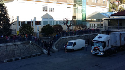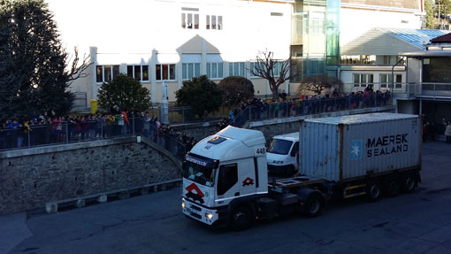 Venerdì12 febbraio 2016 grande fermento nel nostro Istituto. Infatti alle ore 7:30 il camion-container che arrivava da Genova per caricare tutti gli scatoloni con le cose raccolte grazie alla generosità dei genitori, dei bambini e di molte persone, era già ai cancelli! I bambini delle classi quinte della scuola primaria hanno aiutato i volontari per le operazioni di carico, creando una catena umana per il passaggio degli scatoloni meno pesanti, alleggerendo così di molto il lavoro. Un momento certamente di fatica, ma anche di grande festa e soprattutto di coinvolgimento dei bambini per questa opera di solidarietà nei confronti dei più bisognosi. E poi la partenza del camion con la scia di tutti i bambini che con grande festa lo hanno salutato augurando: Buon viaggio verso l'Africa!