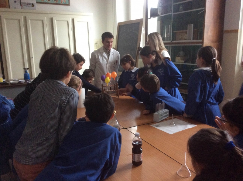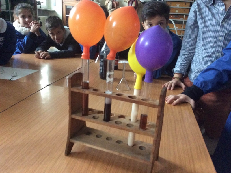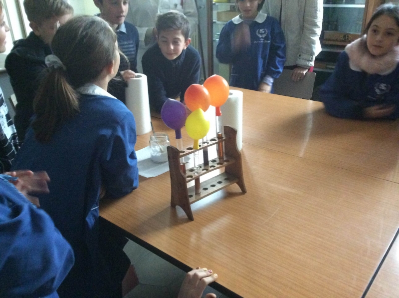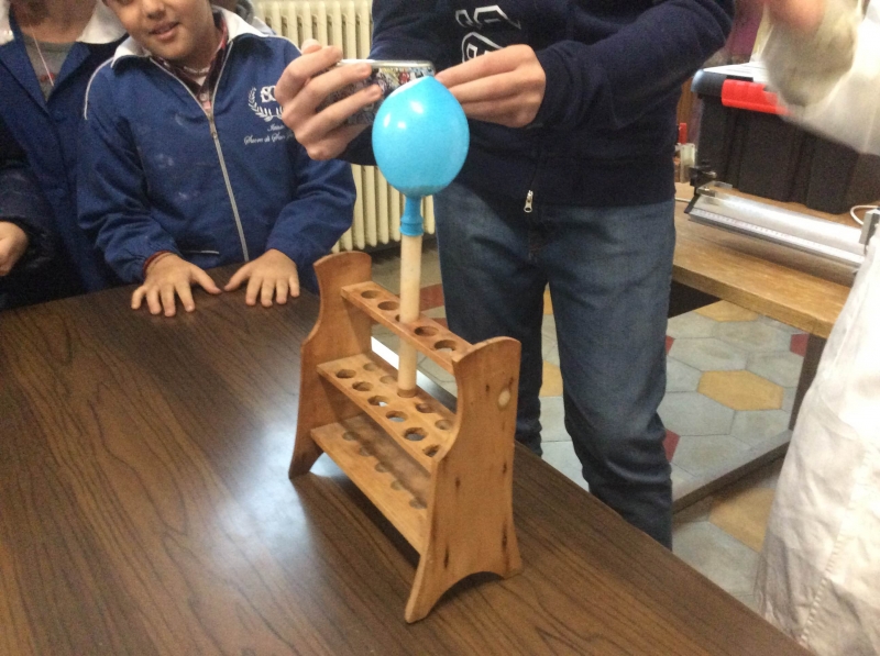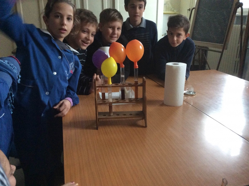 Martedì 15 novembre 2016 i bambini delle classi 5A e 5B hanno partecipato ad un laboratorio scientifico che consisteva in due esperimenti finalizzati a comprendere la differenza fra reazioni chimiche e fisiche. Nel secondo esperimento, i bambini hanno mescolato aceto e bicarbonato e poi hanno osservato ciò che accadeva (formazione della schiuma, il palloncino che si gonfiava e la provetta che diventava fredda). Il laboratorio è stato guidato da Emanuele Canale (docente di Scienze nella scuola media e nel liceo), aiutato da due nostri allievi della 2 liceo scientifico (Carola Bonifacino e Paolo Lovera).