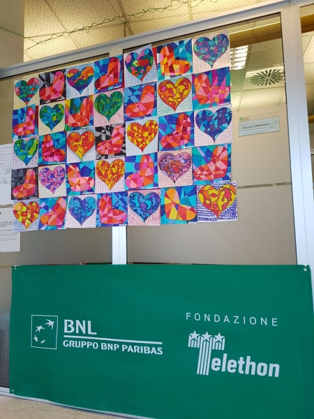 La nostra scuola primaria scende in campo a favore della Fondazione Telethon. Nelle scorse settimane i bambini hanno realizzato alcuni coloratissimi disegni che sono stati esposti all'interno dei locali della sede della BNL (Banca Nazionale del Lavoro) di Pinerolo (corso Torino, 174). Un esempio concreto di "Service Learning" ed un piccolo gesto per sensibilizzare tutti sull'importanza di donare il proprio contributo a favore della ricerca sulle malattie genetiche rare. La premiazione ufficiale dei lavori ha avuto luogo il 16 dicembre 2017 a Pinerolo nei locali della palestra “La Base”.